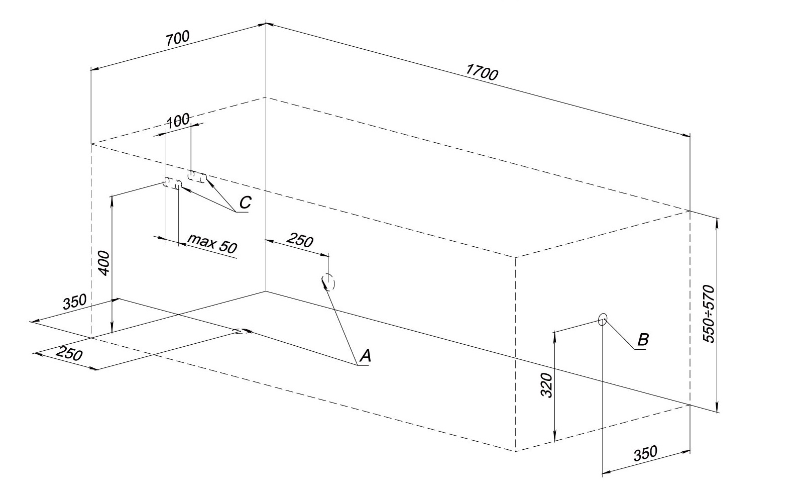 - 1. Ванна акриловая 170х70 Dali без гидромассажа