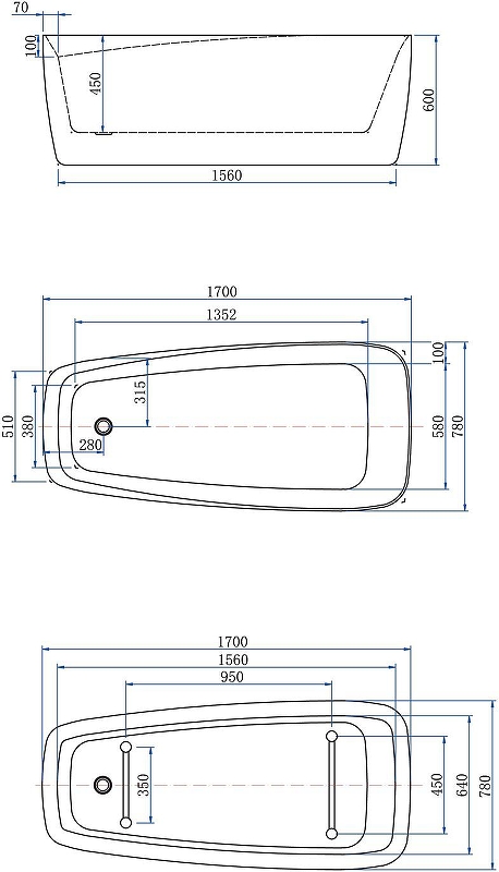Ванна акриловая Aquanet Family Trend 170х78 белый/черный матовый Black matte слив-перелив (292984)
