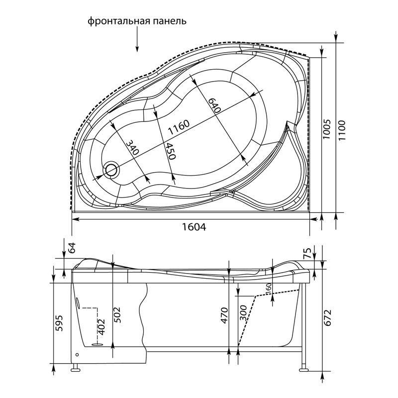 Фронтальная панель, каркас, слив-перелив в стоимость не входят и приобретаются отдельно.