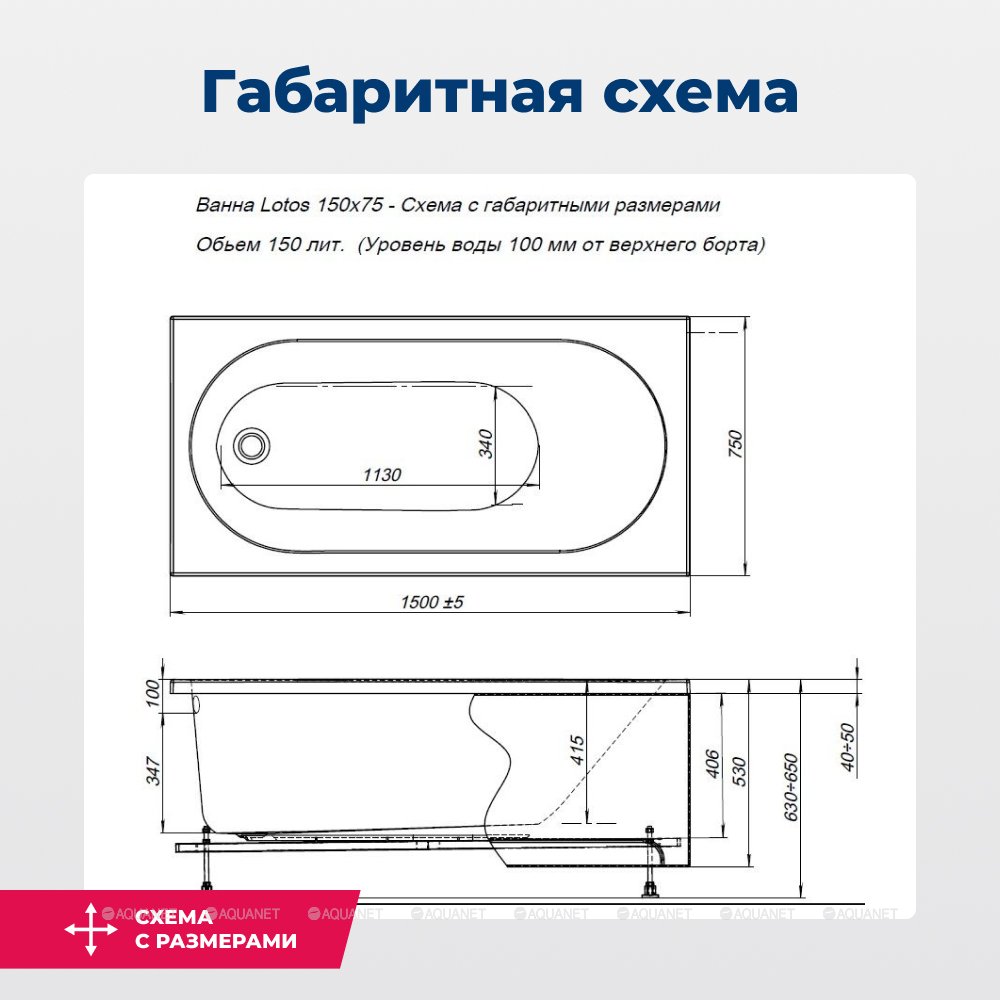 Ванна акриловая Aquanet Lotos 150x75x65 белая (334231)