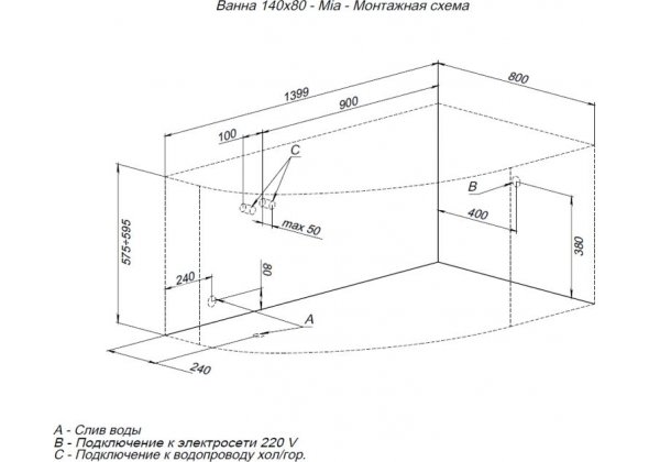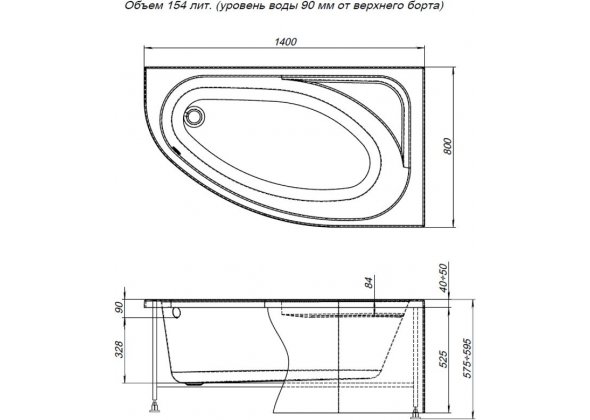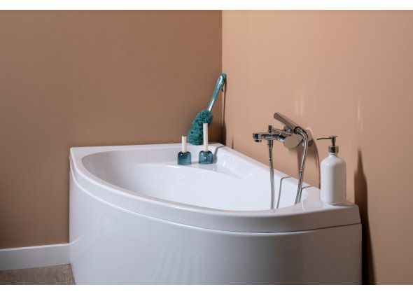 Акриловая ванна Aquanet Mia 140x80 R - для удобства в ванне предусмотрено сиденье, которое можно при желании использовать как полочку для пеномоющих средств. Дно у ванны гладкое, без антискользящего покрытия. Установка предусмотрена в правый угол. Скрыть подключения и придать более эстетичный вид поможет фронтальная панель, которая специально разработана для коллекции MIA и соответствует ванне не только внешне, но и по всем размерам.