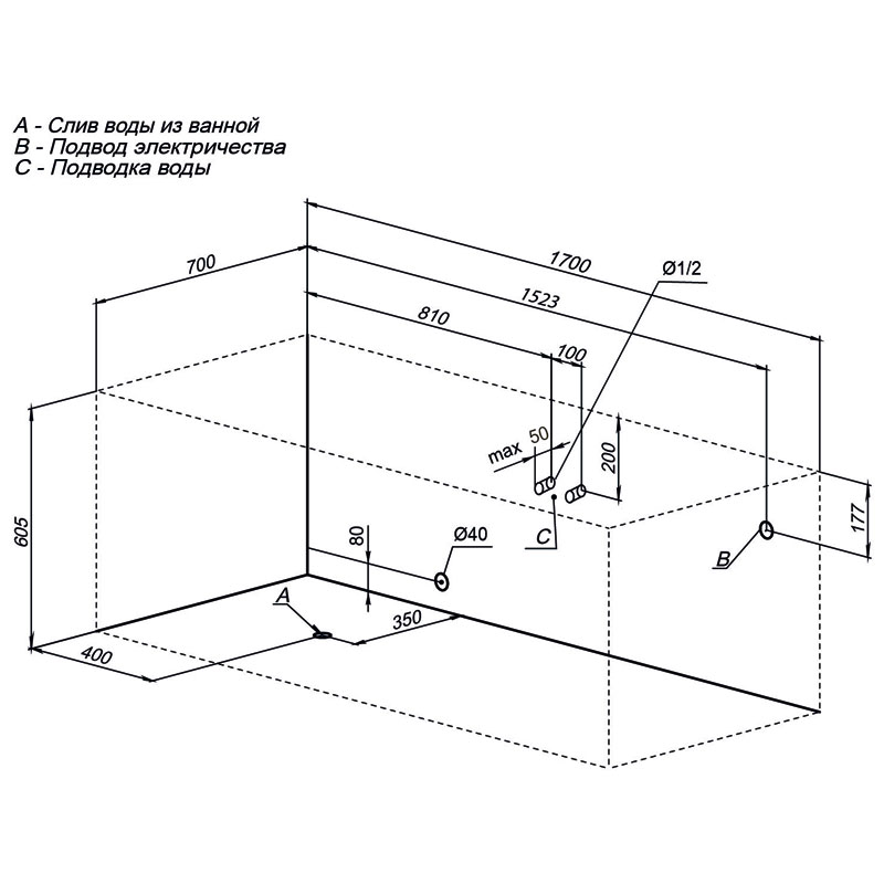 Фронтальная и торцевая панели, каркас, слив-перелив в стоимость не входят и приобретаются отдельно.