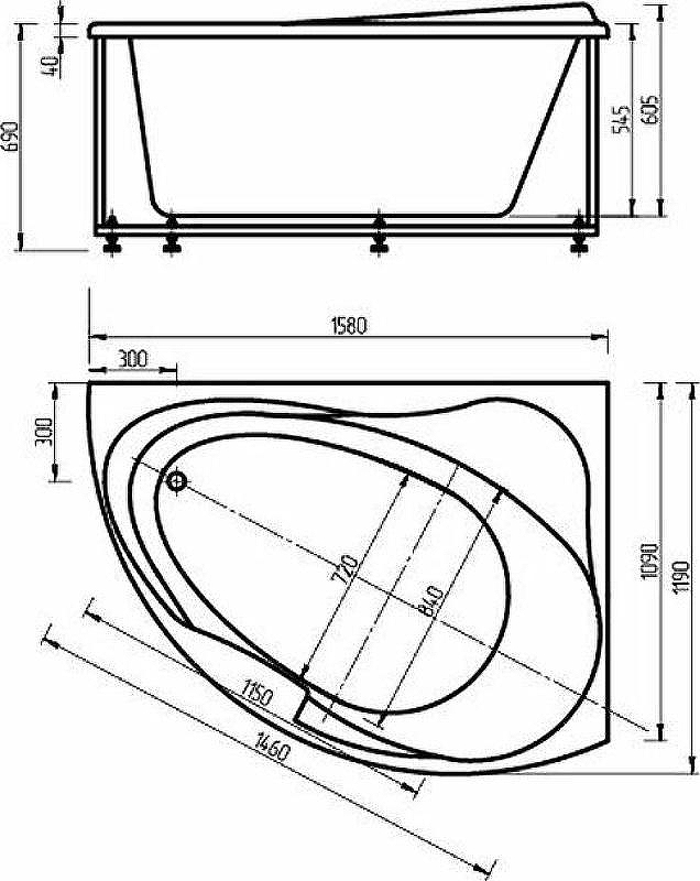 Состав поставки: Чаша ванны, слив-перелив (полуавтомат, хром), каркас (вклеенный), фронтальная панель