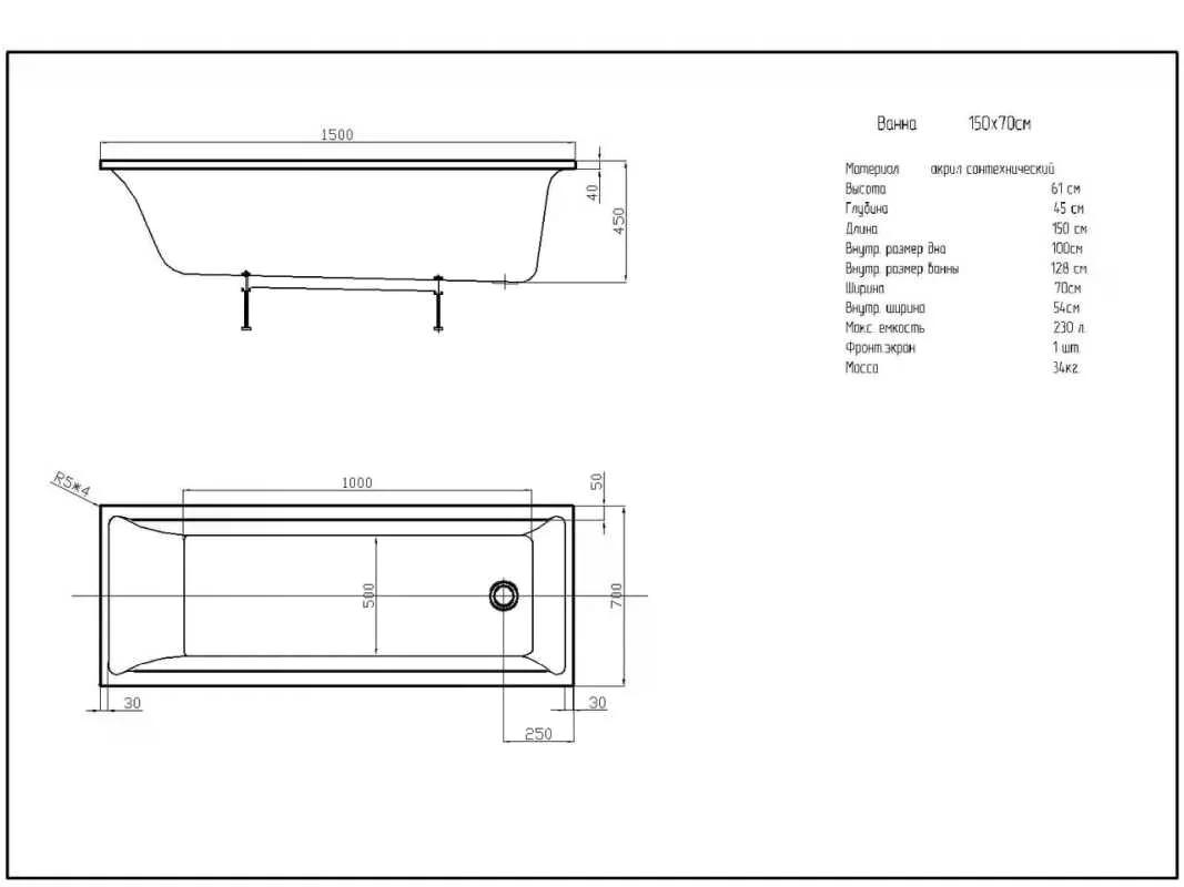 Ванна акриловая Aquatek Лайма 150x70 белая (LAI150-0000001)