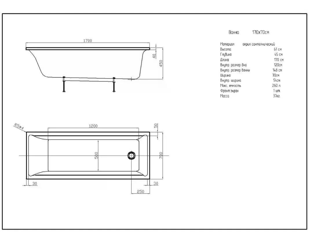 Ванна акриловая Aquatek Лайма 170x70 белая (LAI170-0000001)