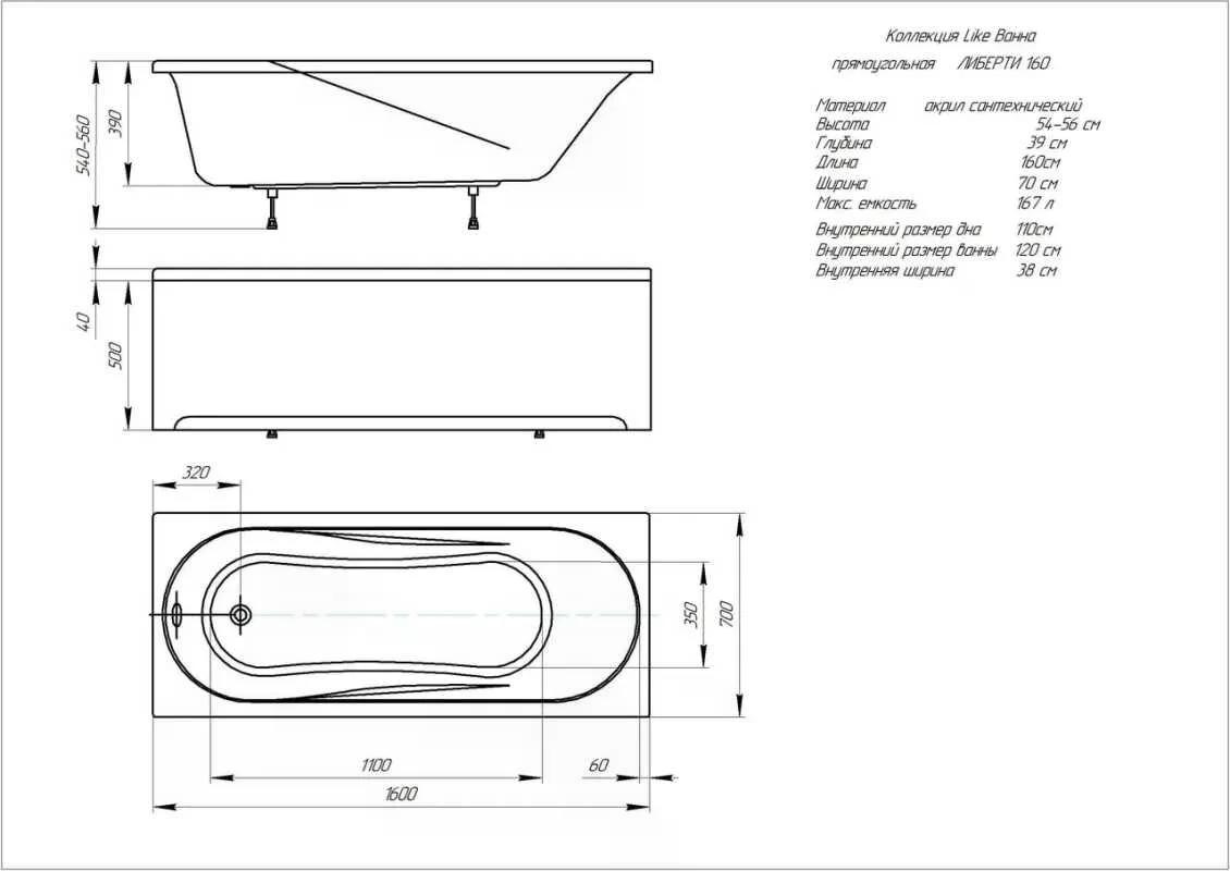 Ванна акриловая Aquatek Либерти 160x70 белая (BER160-0000001)