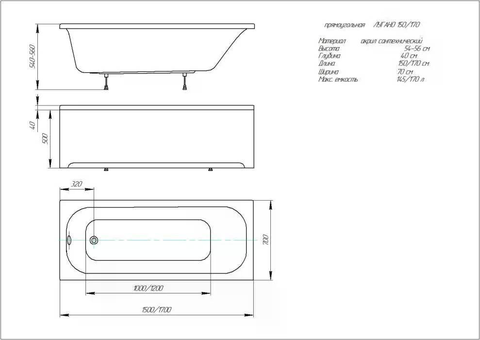 Ванна акриловая Aquatek Лугано 150x70 белая (LUG150-0000001)