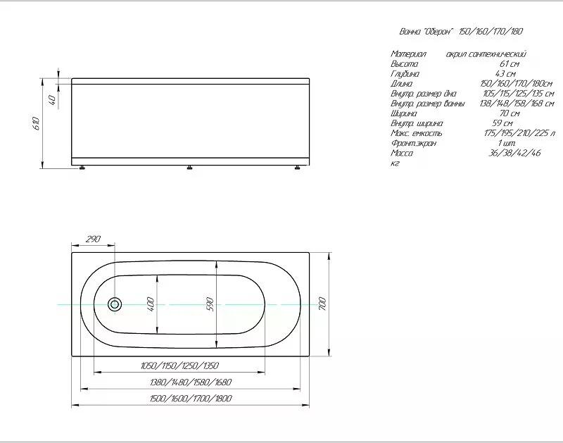 Состав поставки: Чаша ванны, слив-перелив (полуавтомат, хром), каркас (вклеенный), фронтальная панель