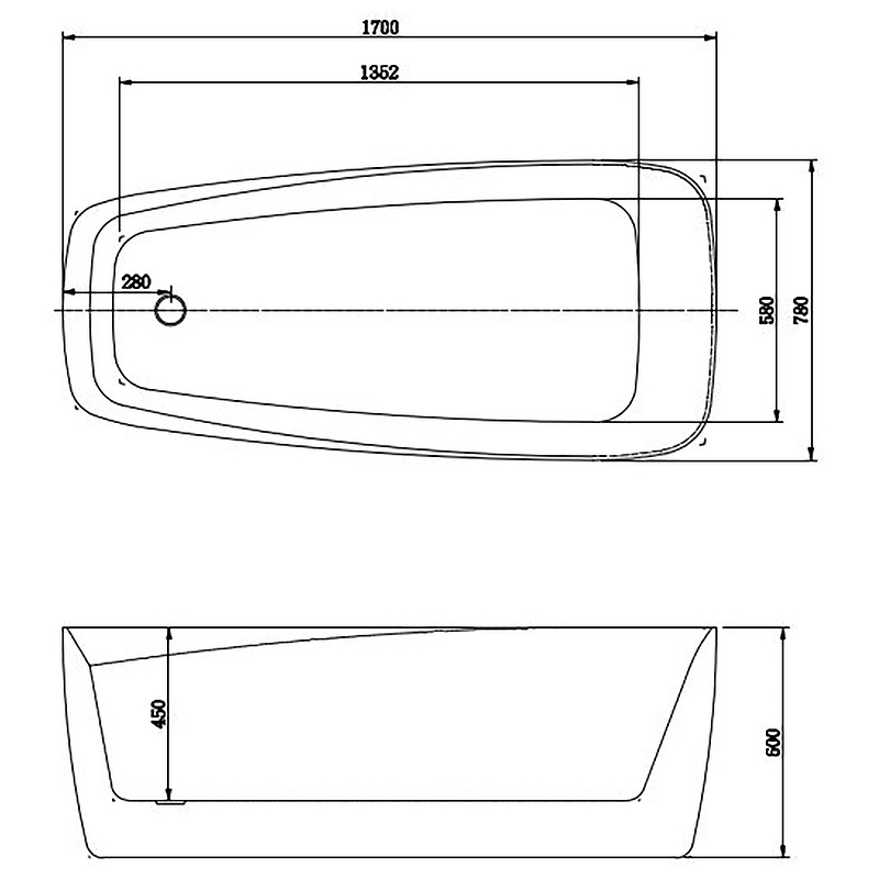 Ванна акриловая Aquatek Паола 1700x780x600 со сливом и ножками белый глянцевый (AQ-190778)