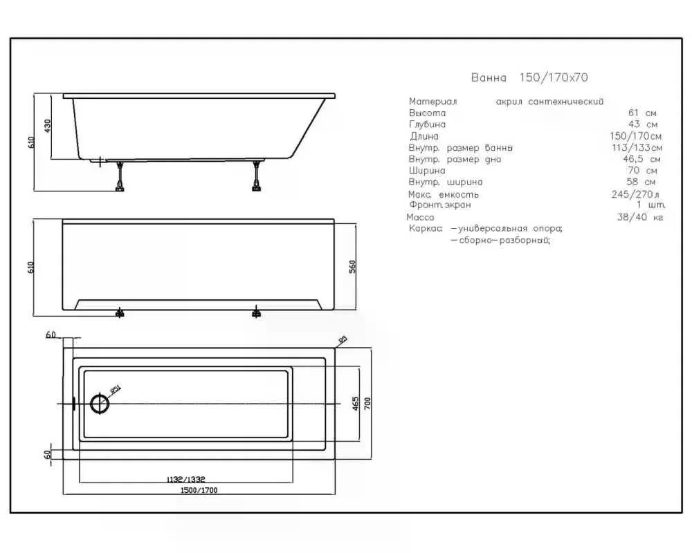 Ванна акриловая Aquatek София 150x70 белая (SOF150-0000001)