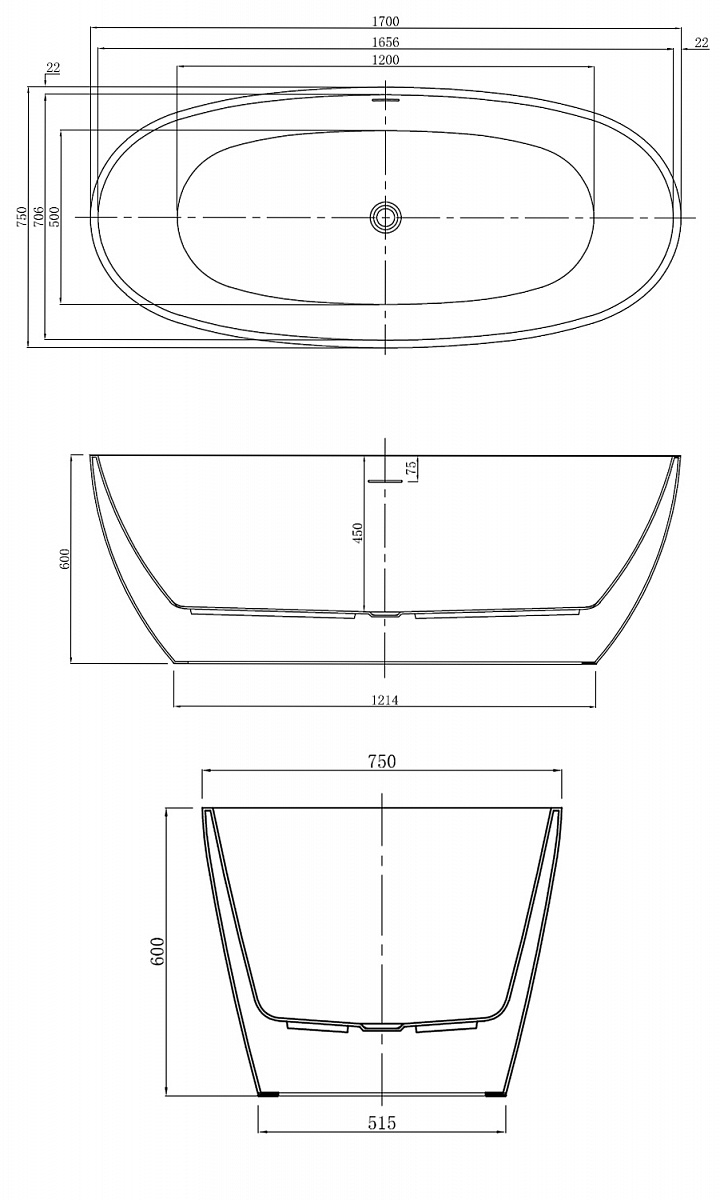 Ванна акриловая Azario Darwin 170x75 (GOL17075)