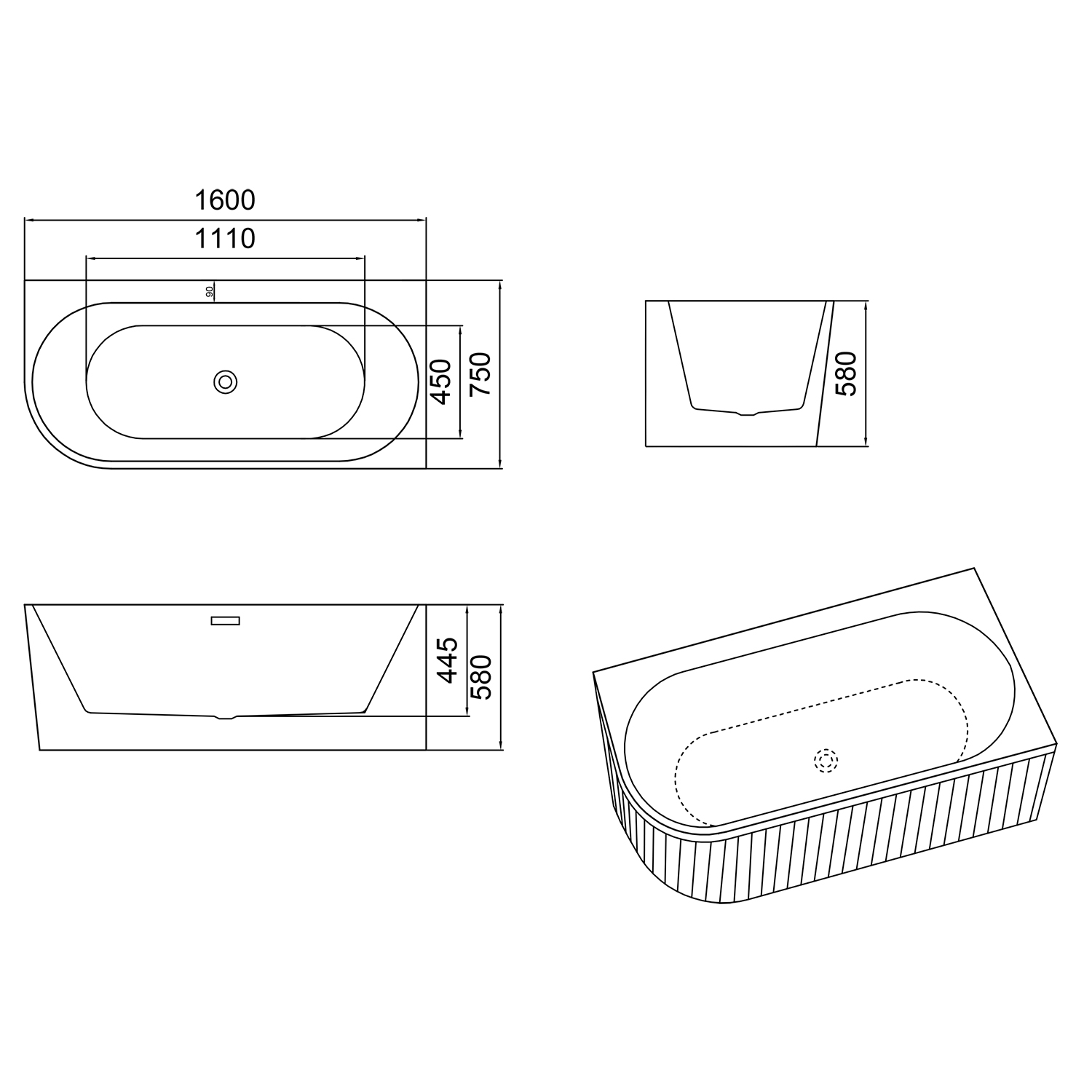 Рифленая внешняя поверхность: Уникальная рифленая текстура внешней поверхности не только придает ванне изысканный и современный вид, но и обеспечивает дополнительное сцепление, предотвращая скольжение и повышая безопасность.