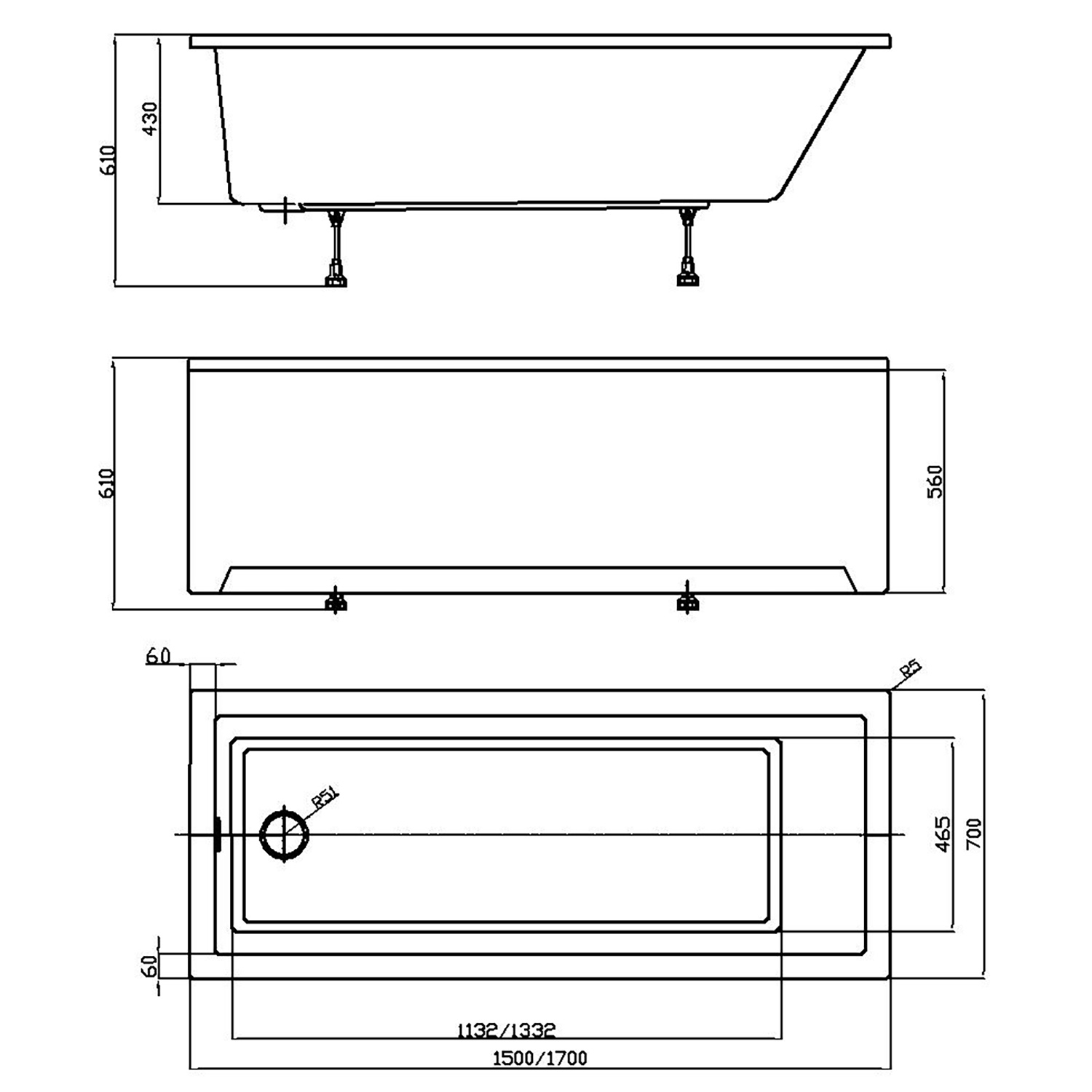 Ванна акриловая Azario Liliana 150x70x61 белая (AV.0012150)
