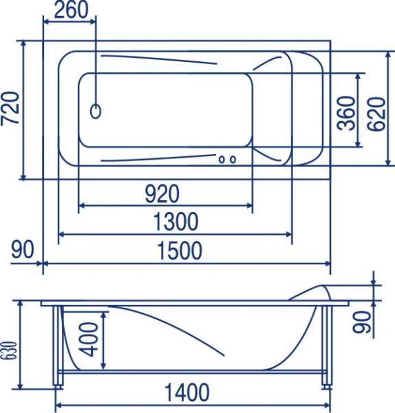 - Усиленный металлический каркас окрашенный порошковой краской - благодаря специальному укреплению и конструкции каркаса ванны Бах выдерживают вес до 600 килограмм