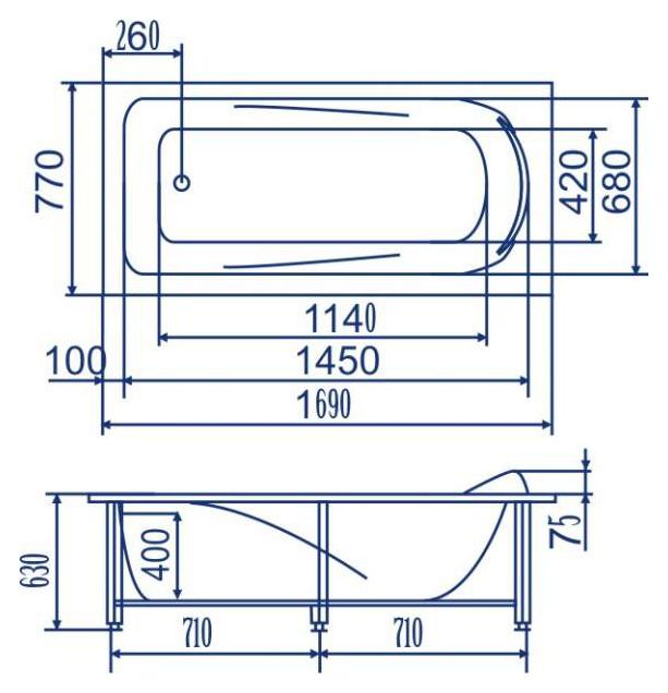 - Усиленный металлический каркас окрашенный порошковой краской - благодаря специальному укреплению и конструкции каркаса ванны Бах выдерживают вес до 600 килограмм
