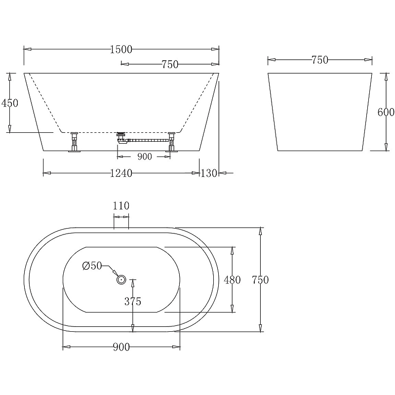 Ванна акриловая BelBagno 150x75 (BB71-1500-W0 )