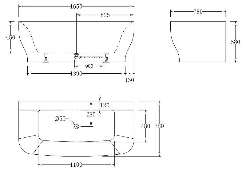 Ванна акриловая Belbagno 165x78 без перелива (BB74-1650-W0)
