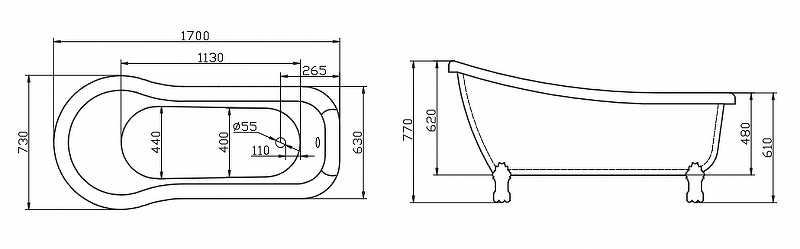 Ванна акриловая BelBagno 168x72 белая (BB20-170)