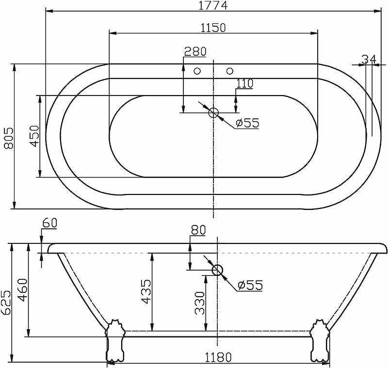 Ванна акриловая BelBagno 177,4x80,5 белая (BB21)
