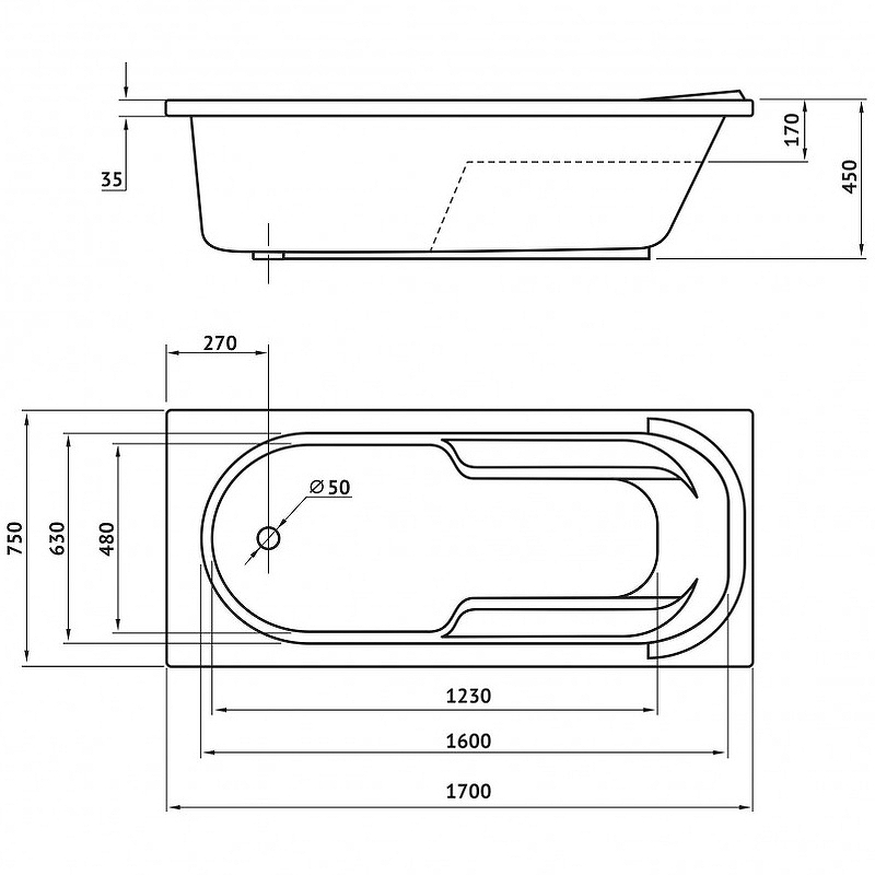 Ванна акриловая Berges Lumbo 170x75 с каркасом (50006)