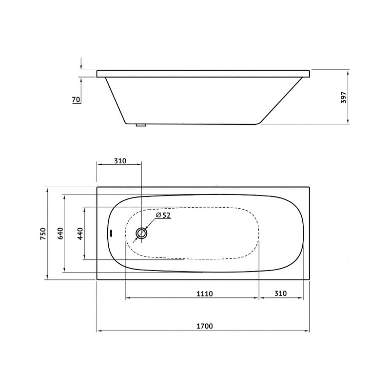 Ванна акриловая Berges Nelu 1700*750 (50020)