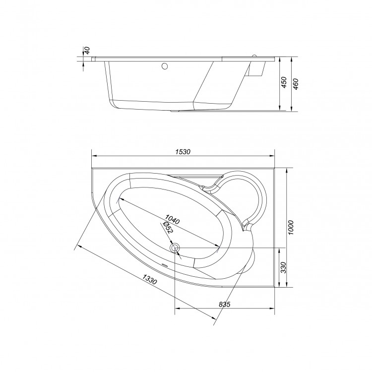 Диаметр слива: 52 мм.