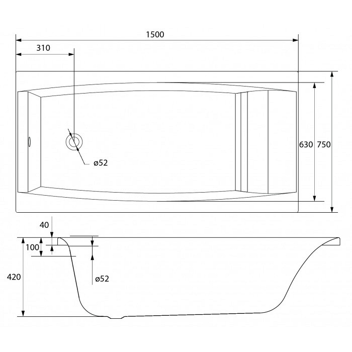 - Ванна акриловая Cersanit Virgo 150х75 белый (PP-VIRGO*150NL)