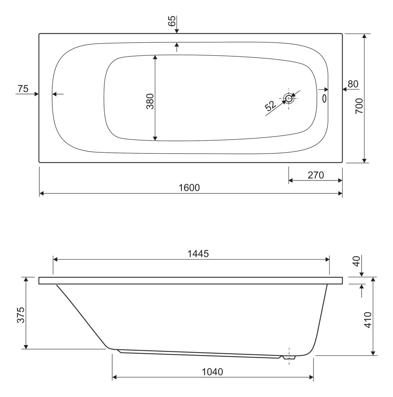 Ванна акриловая Cezares Eco 160x70x60 белый (ECO-160-70-41-W37)