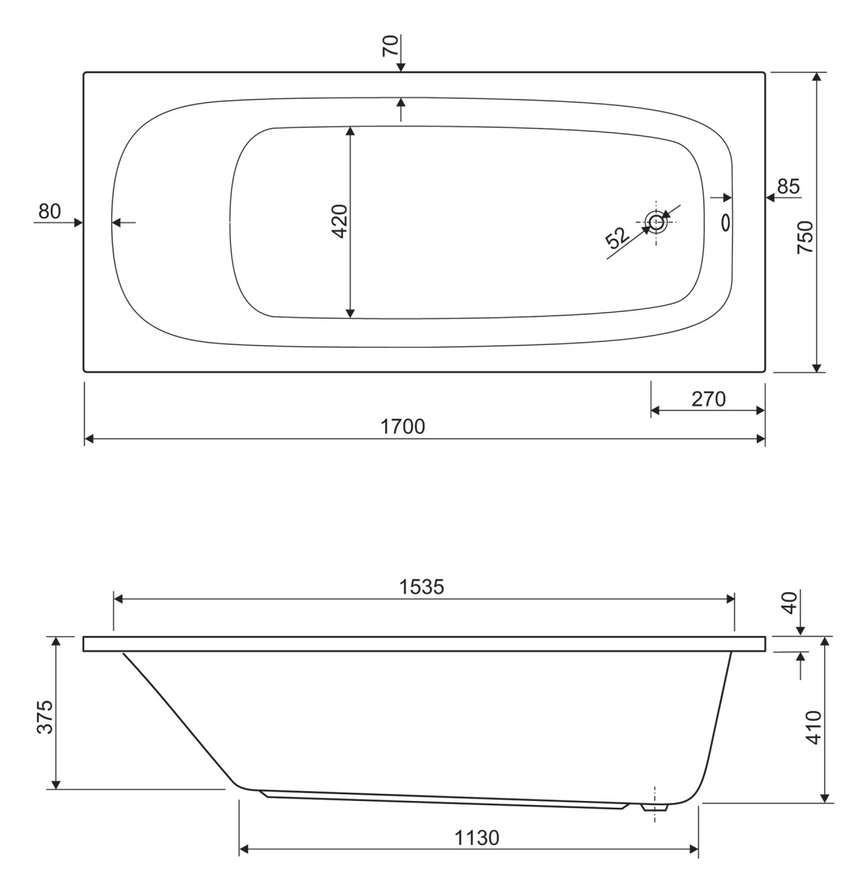 Ванна акриловая Cezares Eco 170x75x60 белый (ECO-170-75-41-W37)