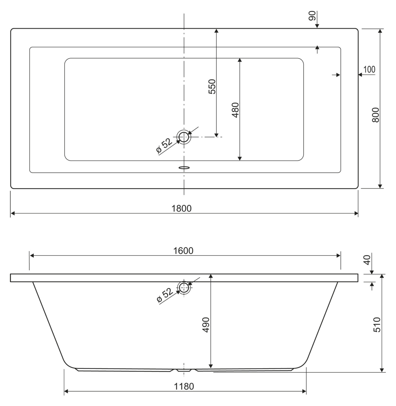 Ванна акриловая Cezares Plane 180x80x63 белый (PLANE-180-80-49-W37)