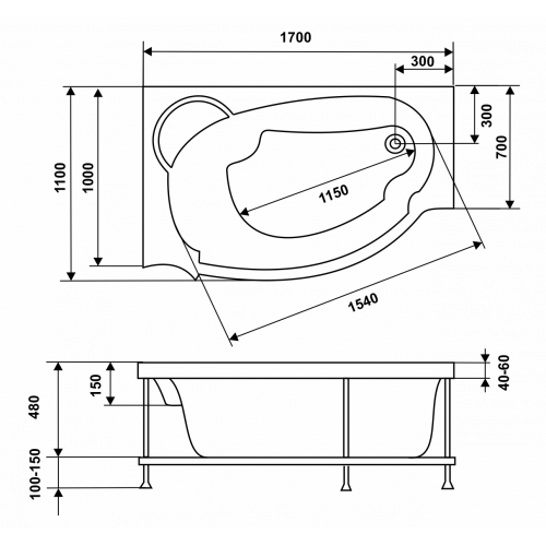 Ванна акриловая Eurolux Александрия 170х110 обладает следующими свойствами: