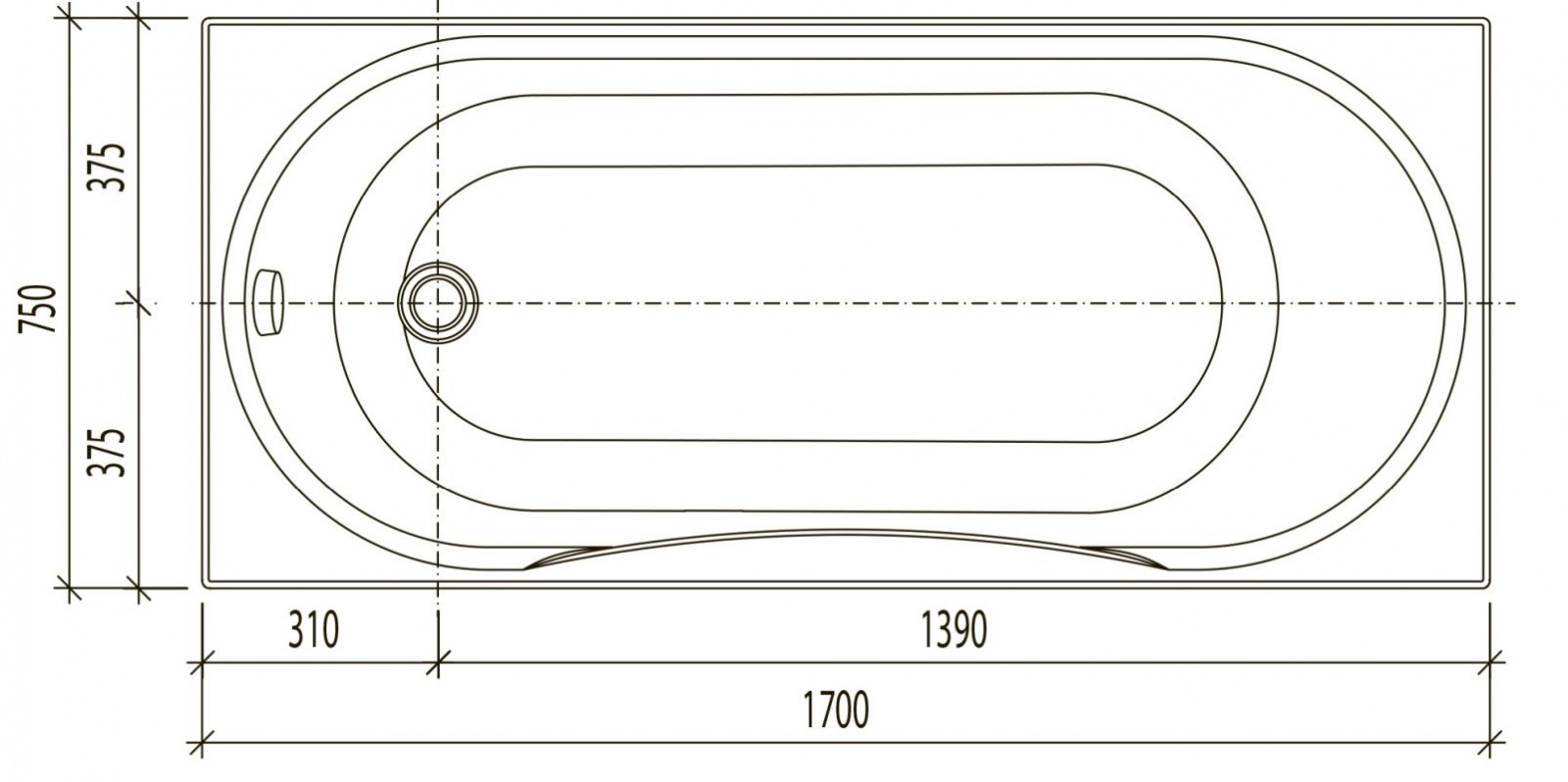 - Ванна акриловая Eurolux Olive 170х75
