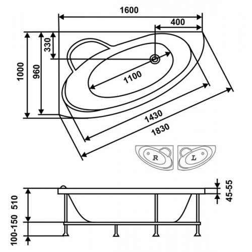 - Ванна акриловая Eurolux Sparta 160x100 правая