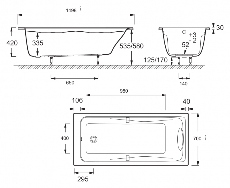 - Смягченные углы с внутренней стороны чаши ванны облегчают уход.