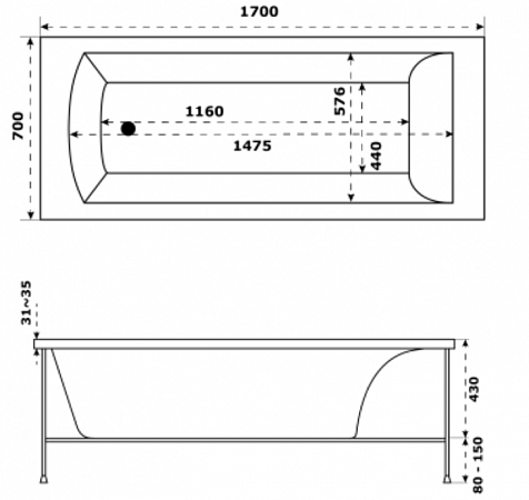 - Изготовлена из акрила - прочного и приятного на ощупь материала. Благодаря низкой теплопроводности акрил долго сохраняет тепло воды.