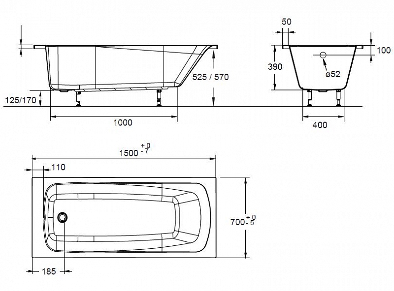 Ванна акриловая Jacob Delafon Patio 150*70 (E6810RU-01)