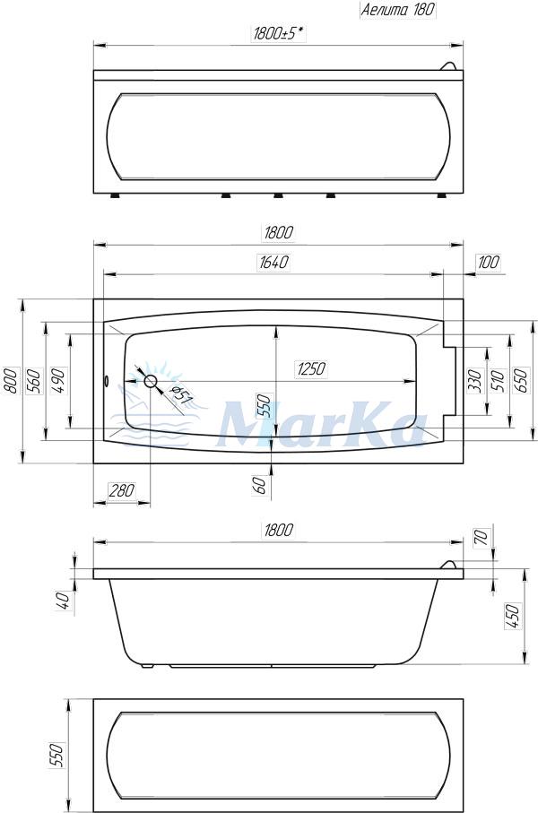 Ванна акриловая 1Marka Aelita 180x80 белая (01ае1880)