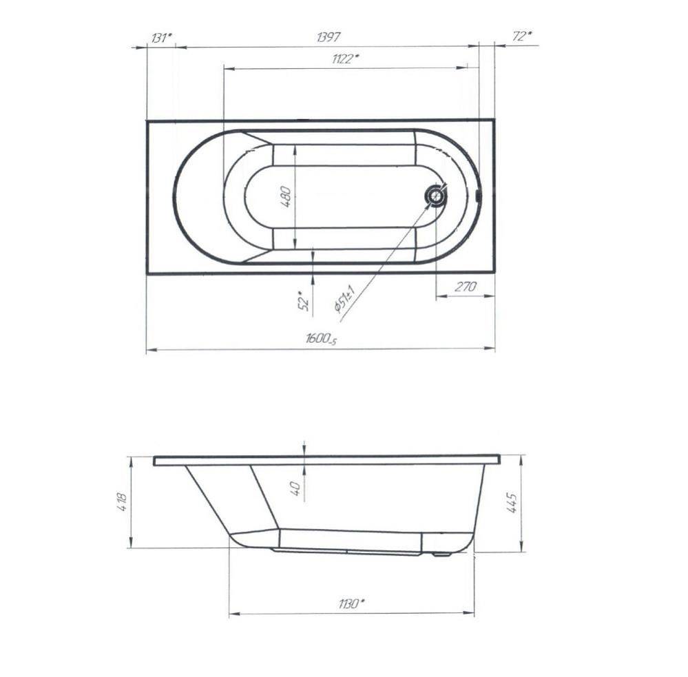 Ванна акриловая 1Marka Atlas 160x70 белая (01атл1670)