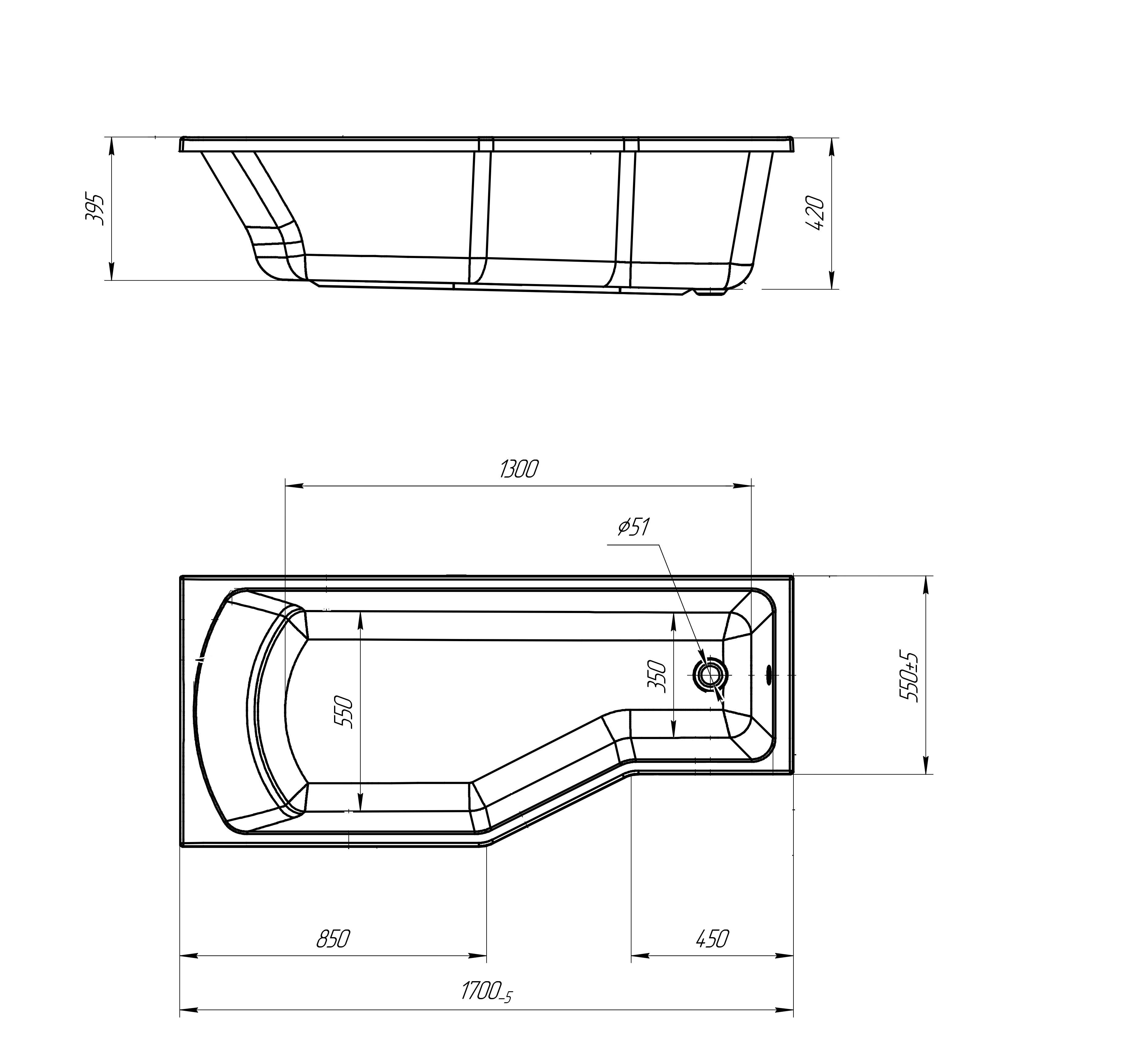 - Асимметричная форма ванны позволит совместить слив ванны и раковины (раковина размещается над узкой частью ванны), что позволит эргономично обустроить внутреннее пространство ванной комнаты и осовременить ее дизайн.