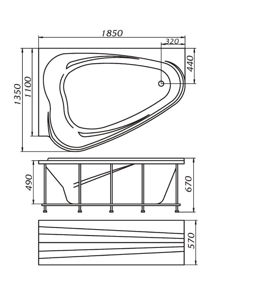 Каркас для ванны 1MarKa Love 1850х1350 R