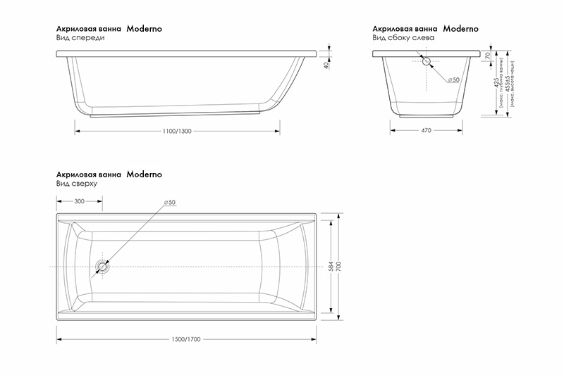 Ванна акриловая Melodia Moderno 170*70*42,5 (MBHR00717070)