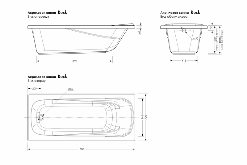 Максимальная нагрузка на ванну 500кг. 100% экологичность. Бесшумный набор воды и повышенная теплоизоляция.