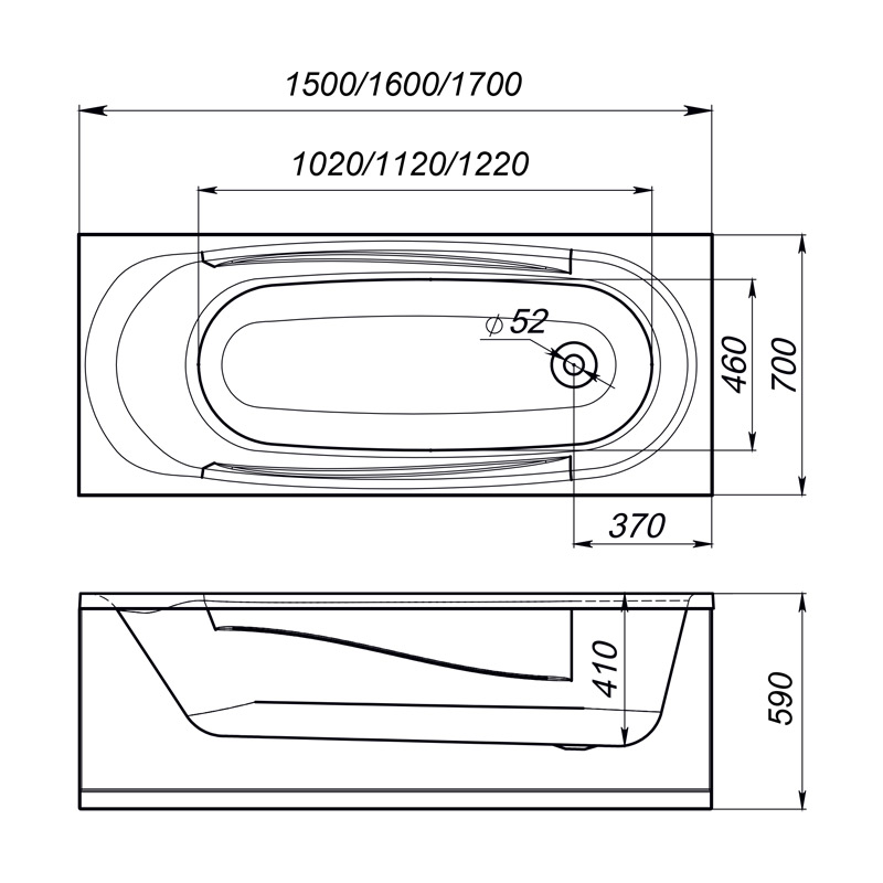 Ванна акриловая Melodia Standard 150х70 MBHR00815070 (DS02Sd15070)