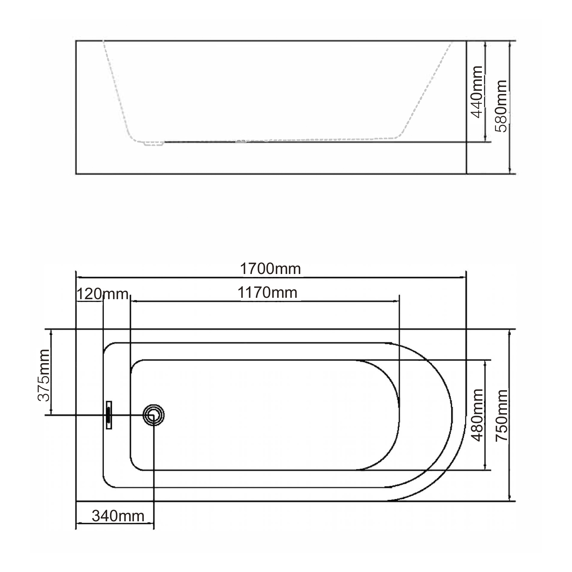 Ванна акриловая отдельностоящая Swedbe Vita 1700x580x750 белая (8842)