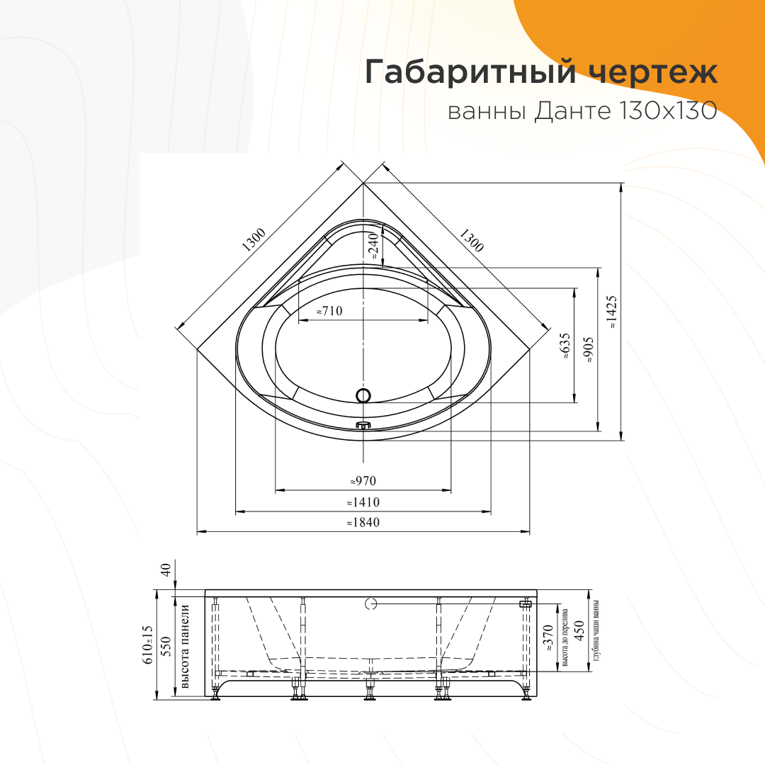 Ванна акриловая Радомир 130x130x61 белая (1-01-0-0-1-362Ч)