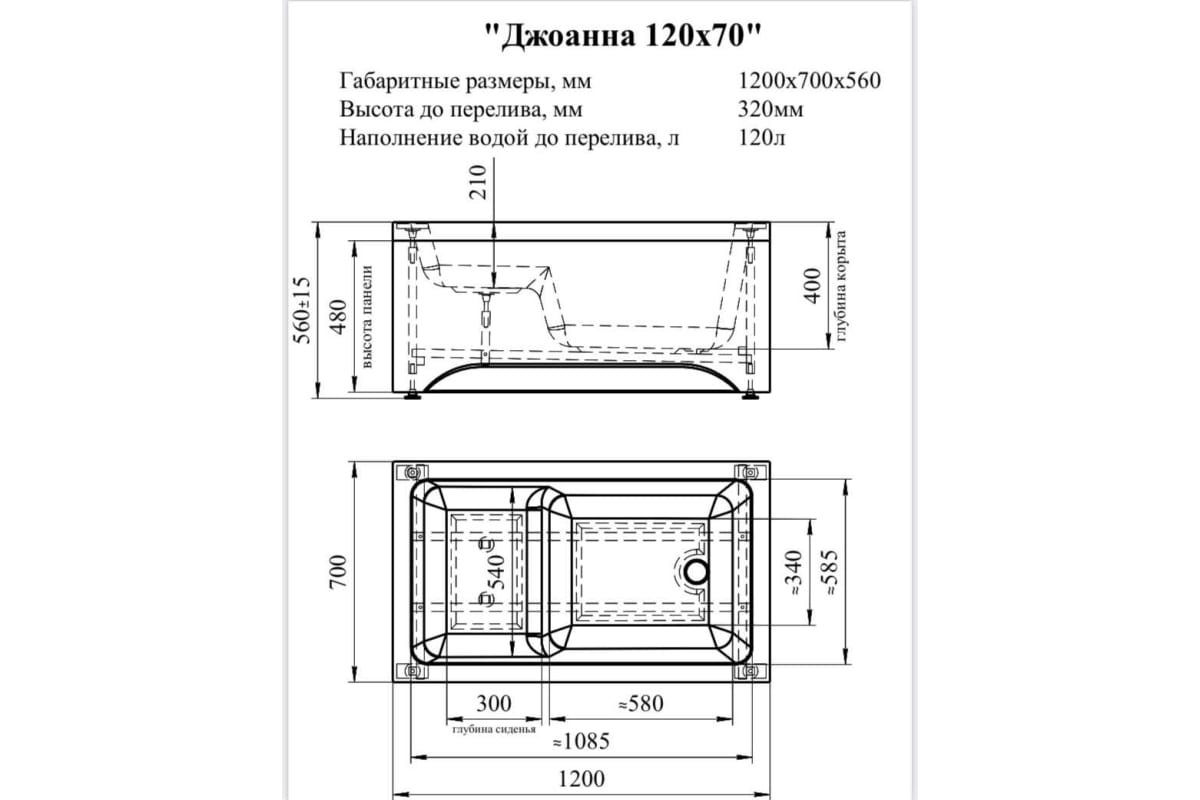 Ванна акриловая Радомир Джоанна 1200х700 белая (2-01-0-0-1-253Р)