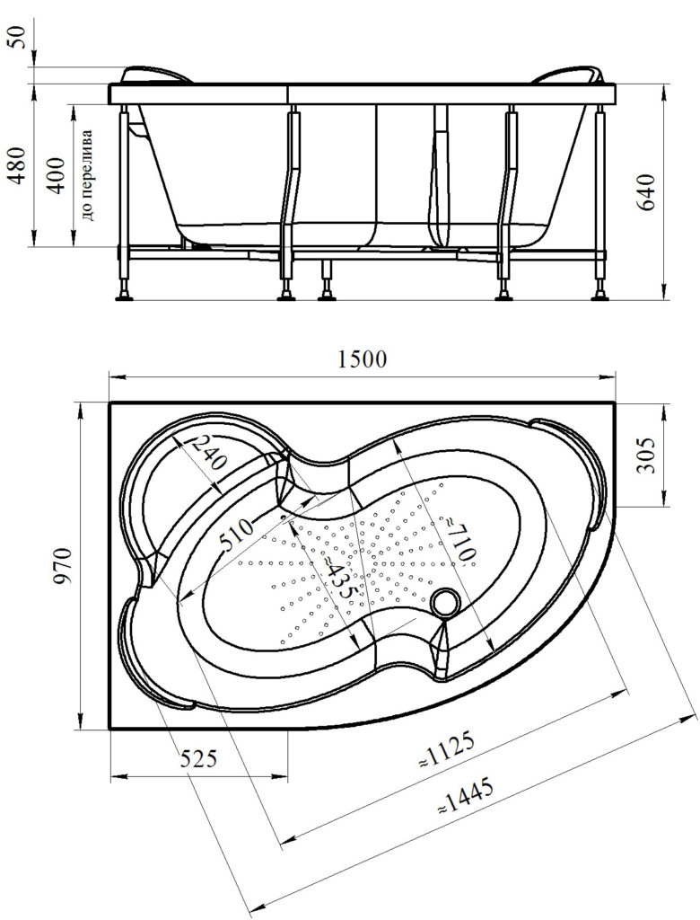 Ванна акриловая Радомир Ирма 149*96 L, с каркасом (2-01-0-1-1-216)