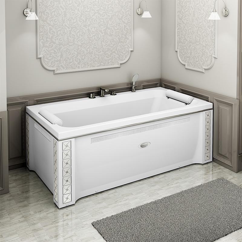 Фронтальная панель с горизонтальной декоративной вставкой Кристаллы Swarovski и вертикальными декоративными вставками Арт-мозаика к ванне Хельга 170х90 (1-21-0-0-0-045)