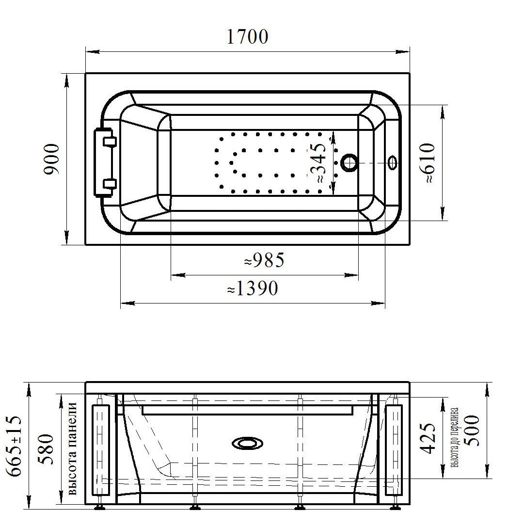 Фронтальная панель к ванне Хельга 170х90 (1-21-0-0-9-045)