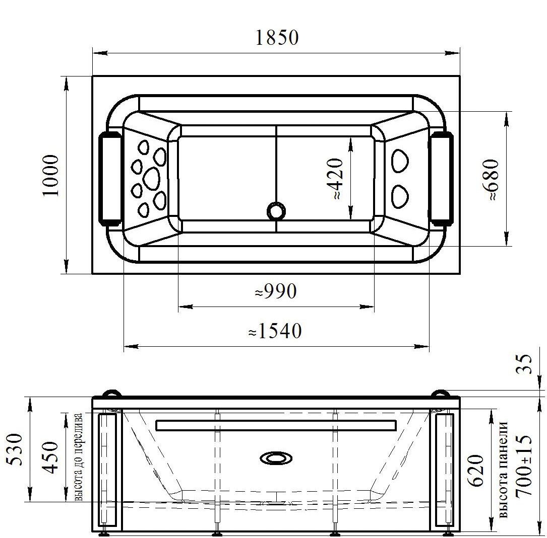 Состав поставки: Ванна акриловая, рама-подставка, подголовник - 2 шт.